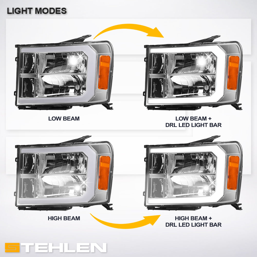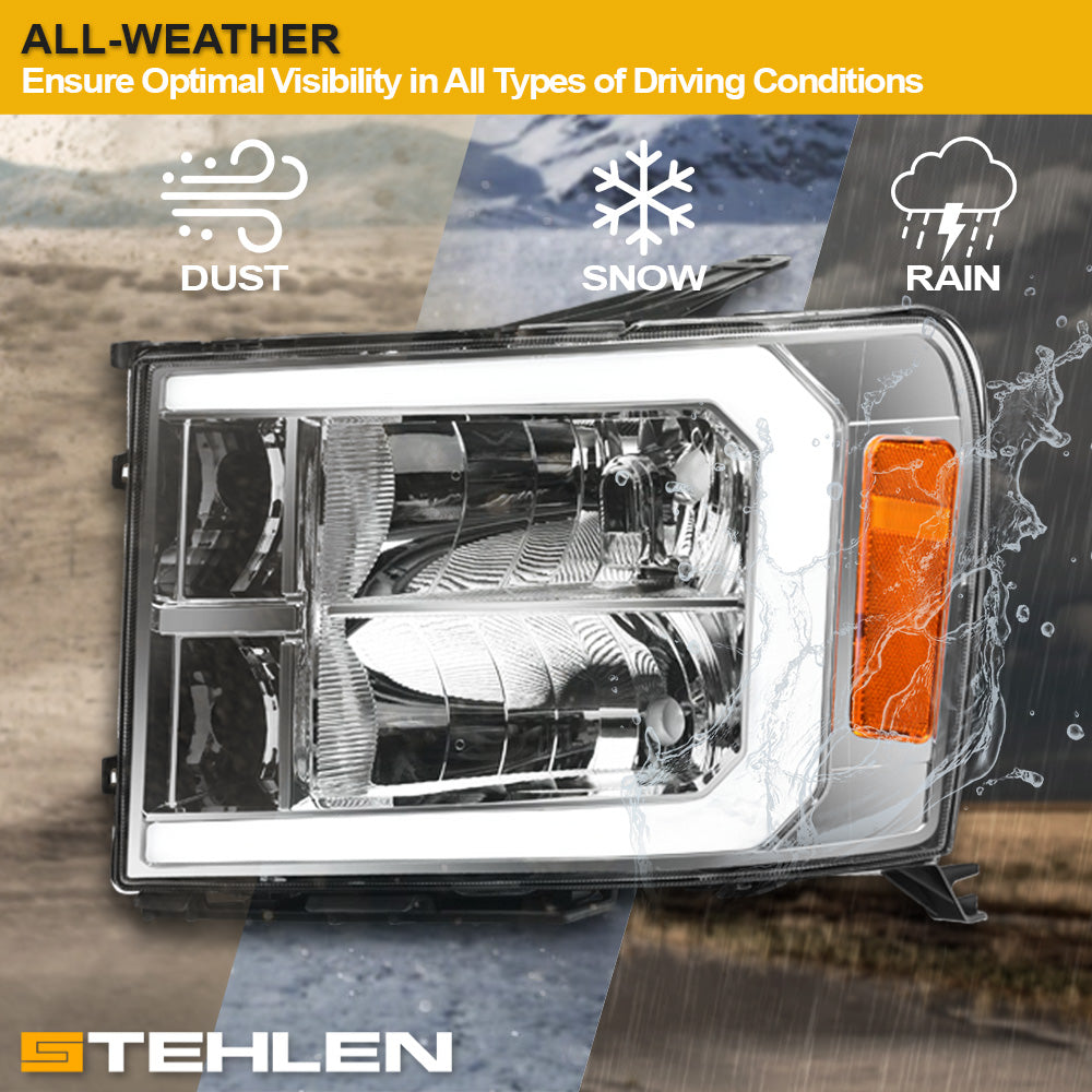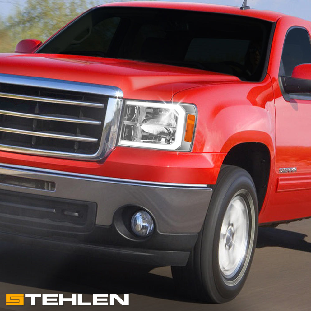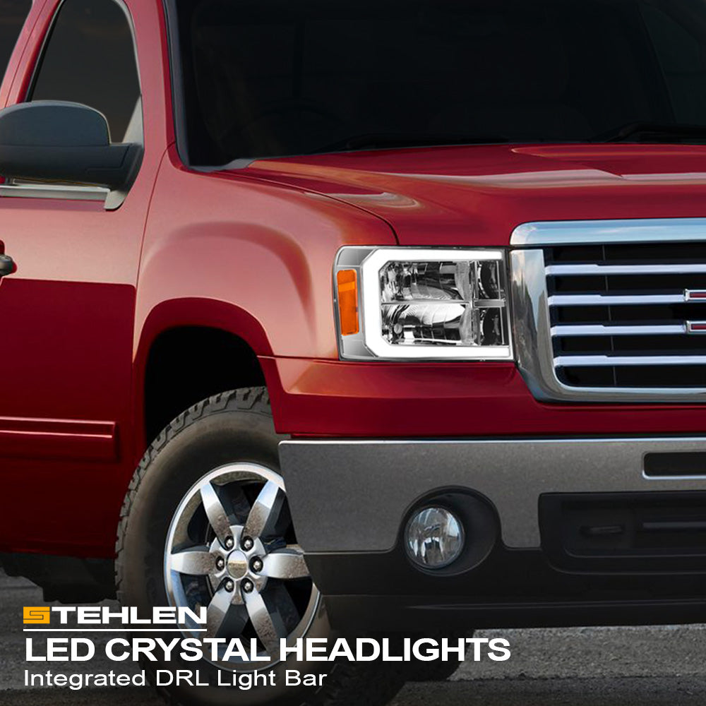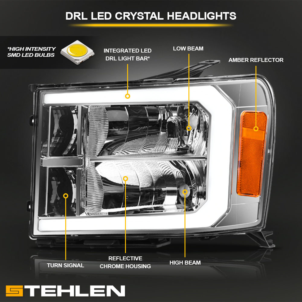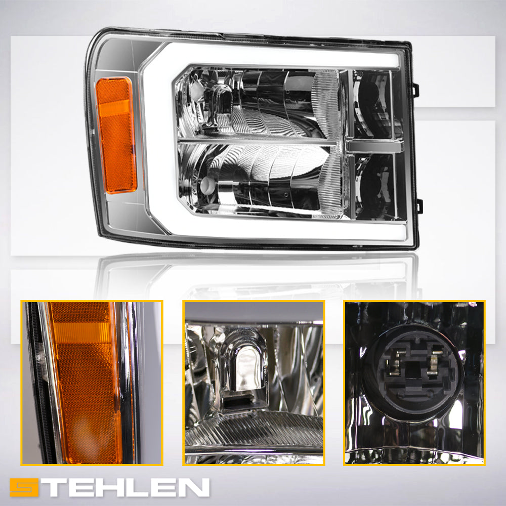 Stehlen 642167826927 Compatible With 2007-2013 GMC Sierra 1500 / 2007-2014 2500 3500 HD DRL LED Strip Bar Headlights With Signal Amber - Chrome