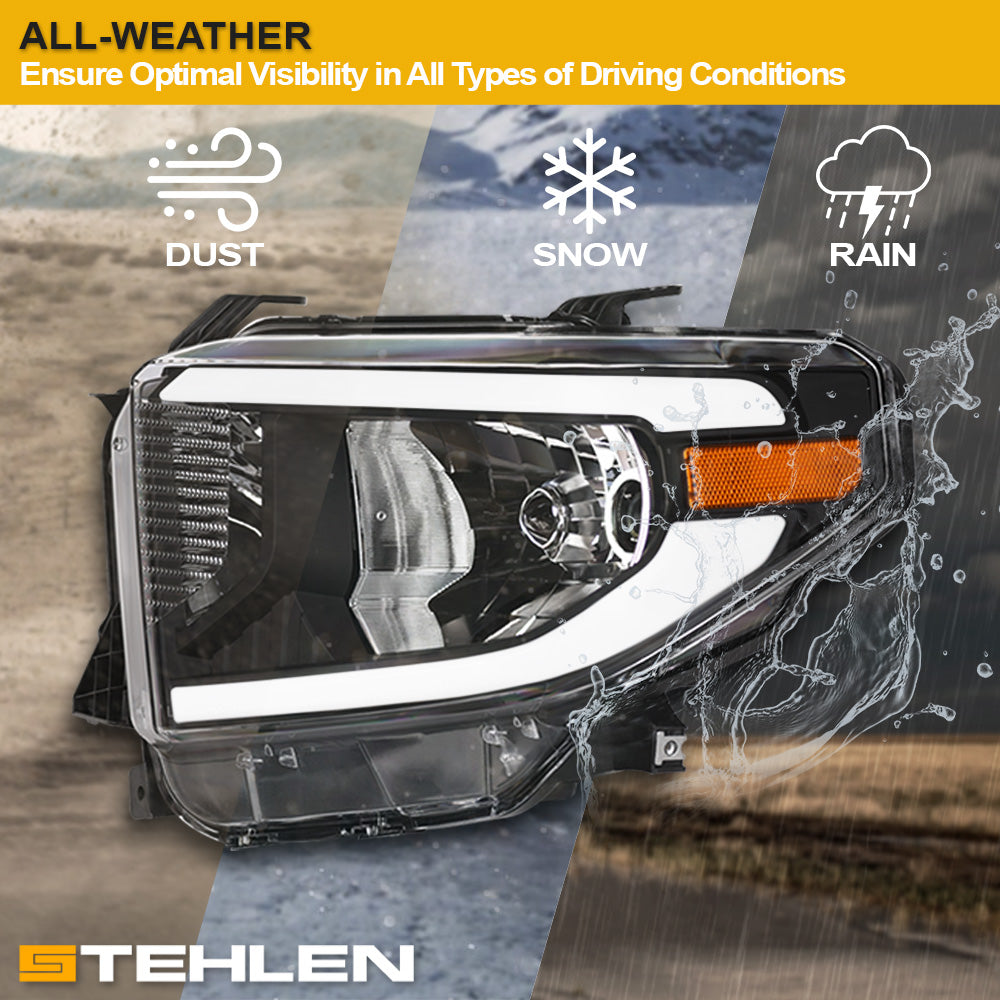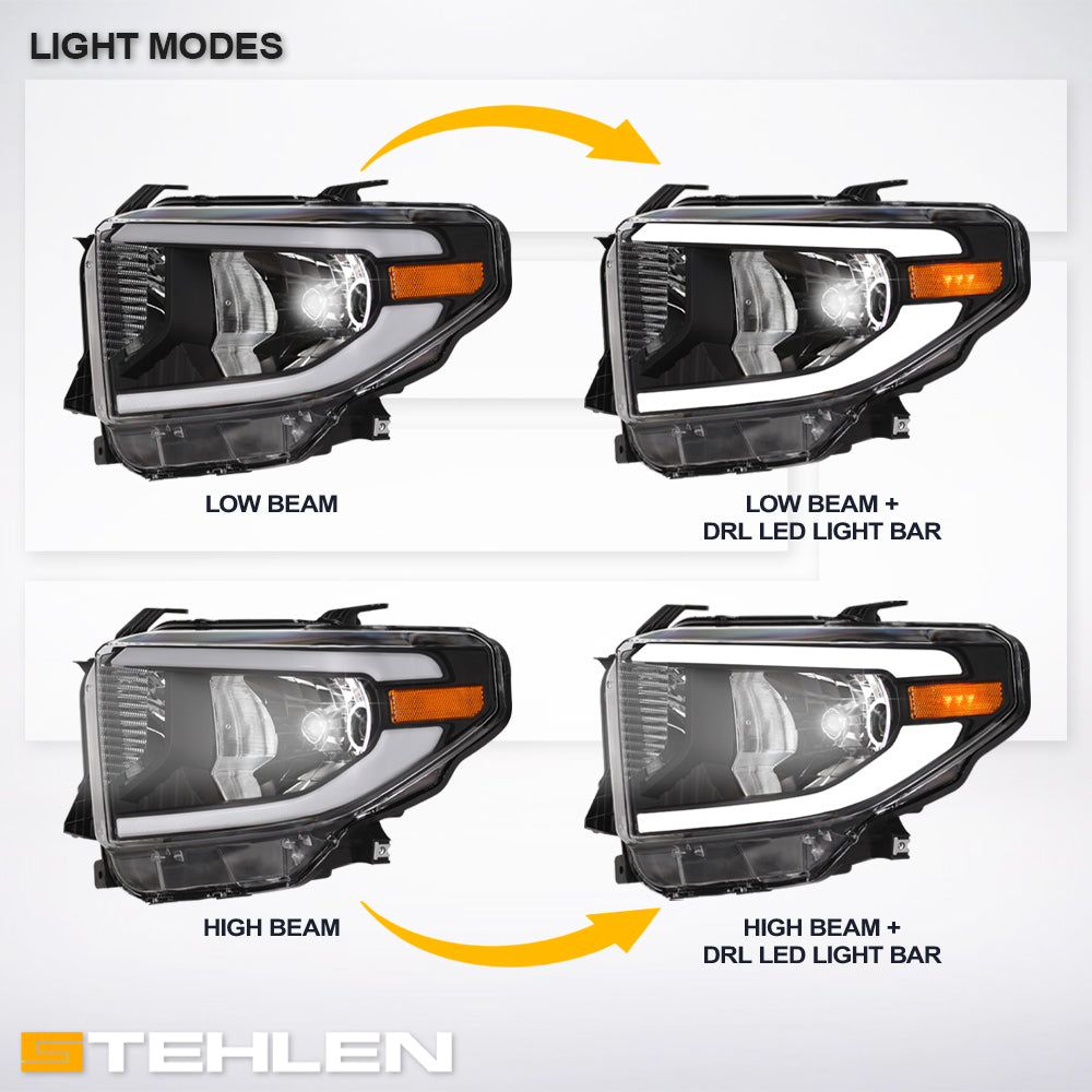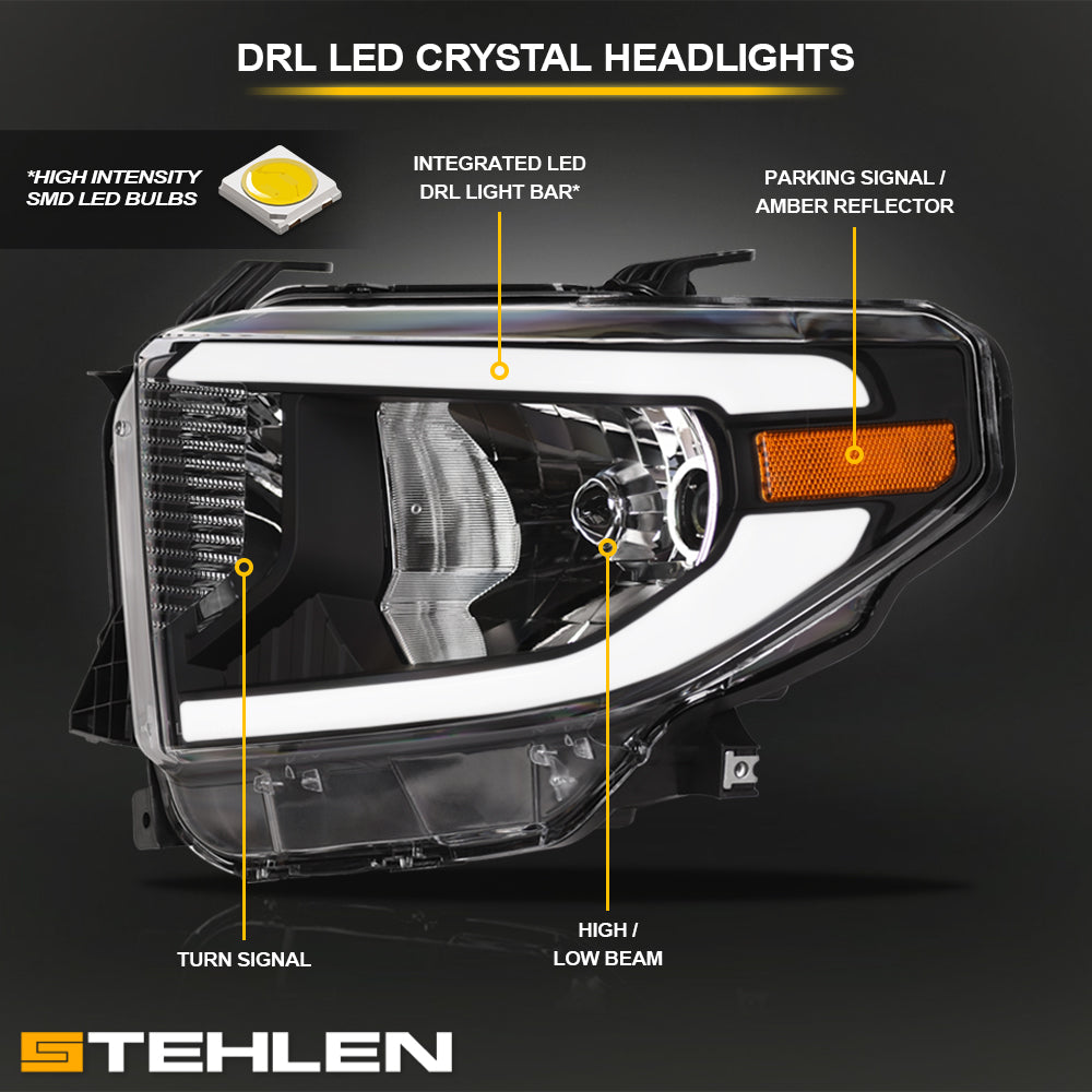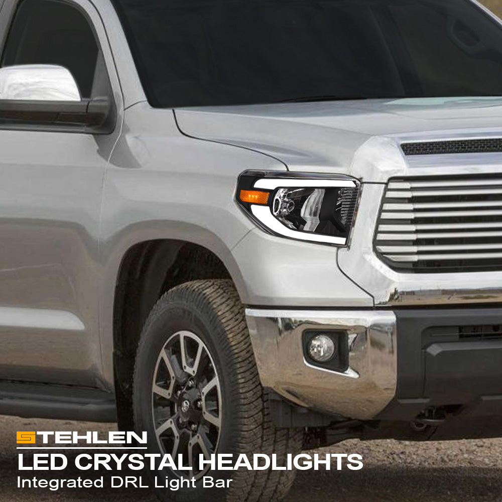 Stehlen 642167827290 Compatible With 2014-2021 Toyota Tundra SR / SR5 / Limited / TRD PRO DRL LED Strip Bar Headlights With Signal Amber - Black