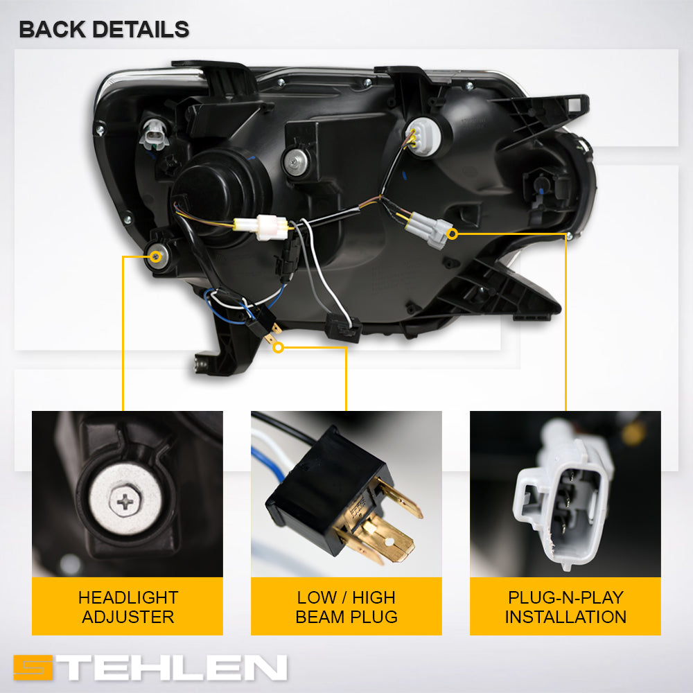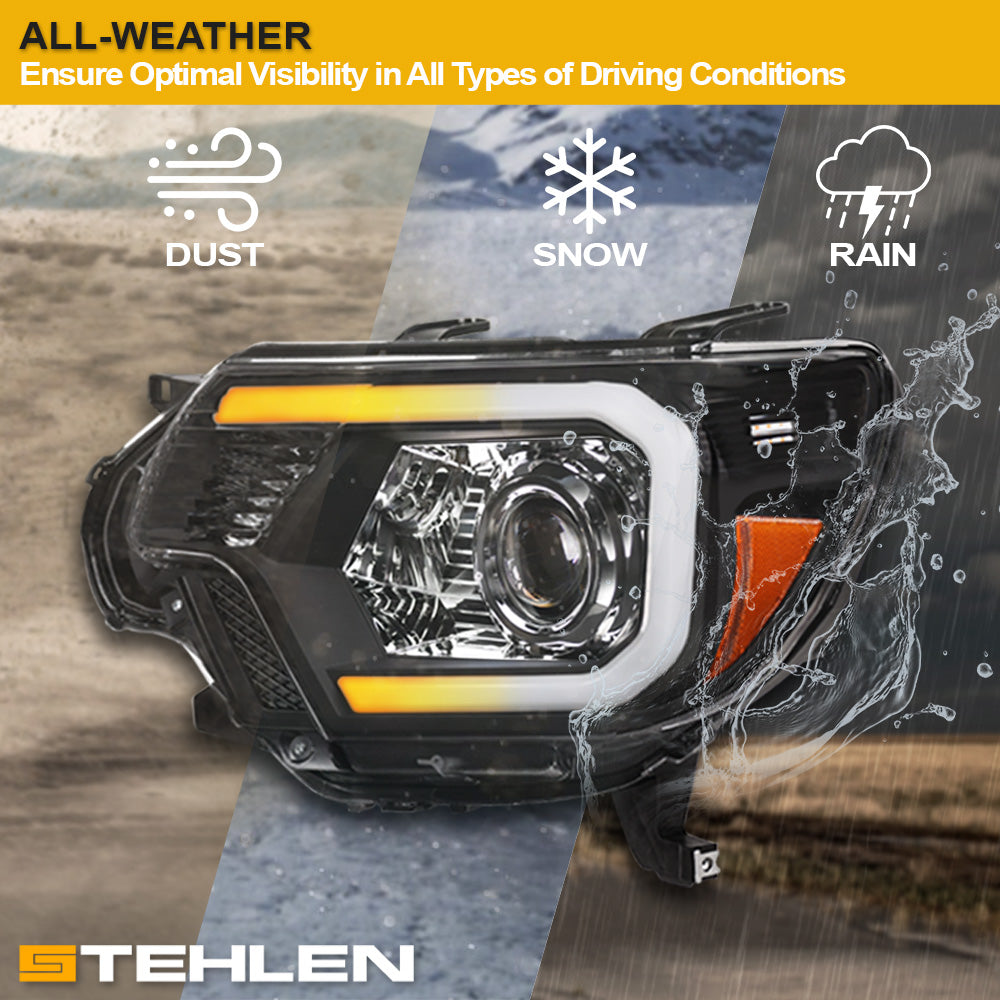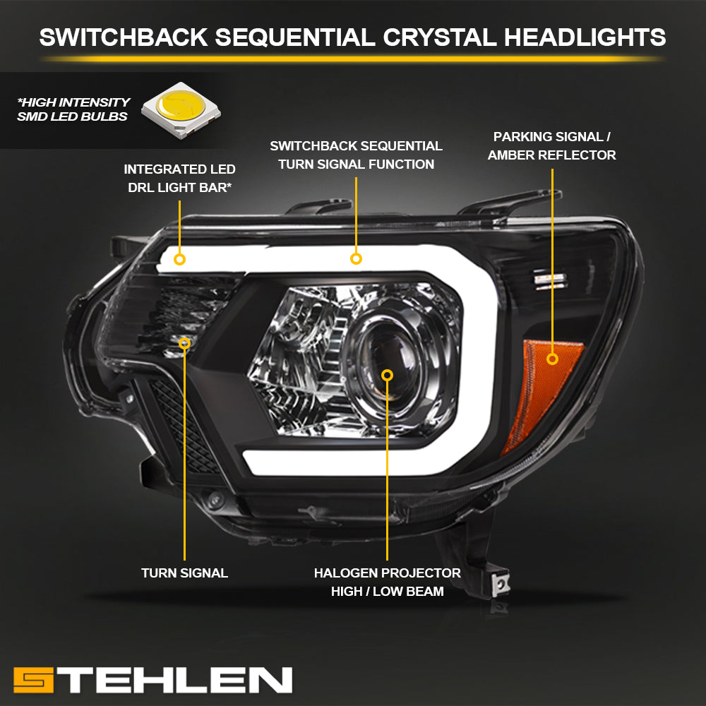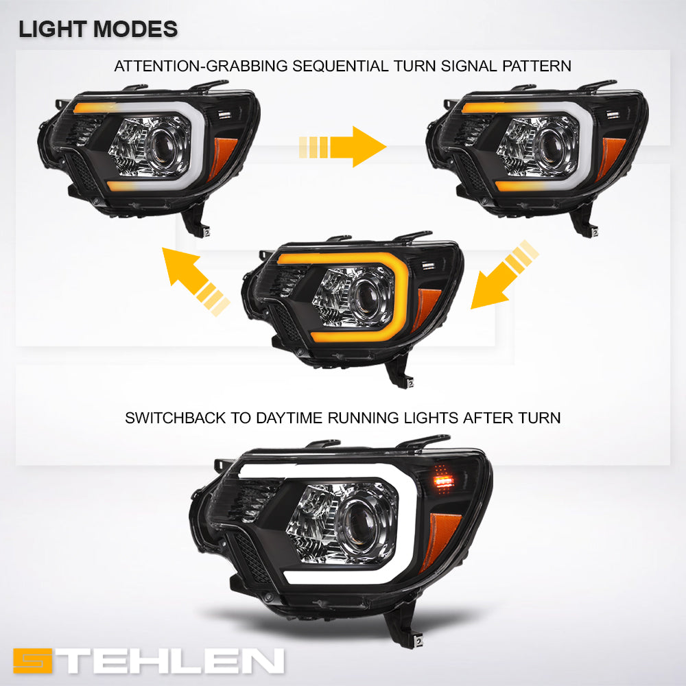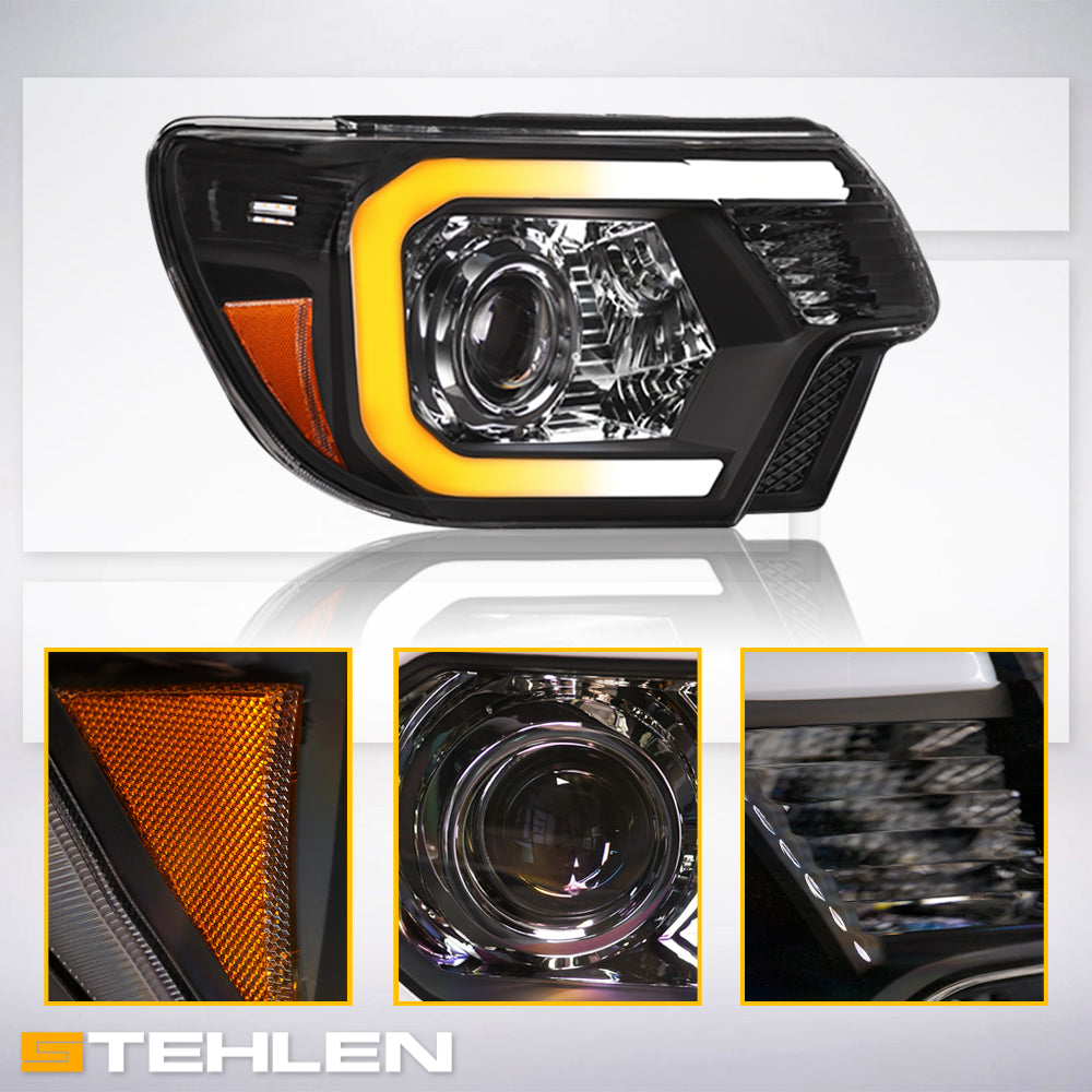 Stehlen 642167827931 Compatible With 2012-2015 Toyota Tacoma Switchback Sequential LED Strip Bar Projector Headlights With Signal Amber - Black