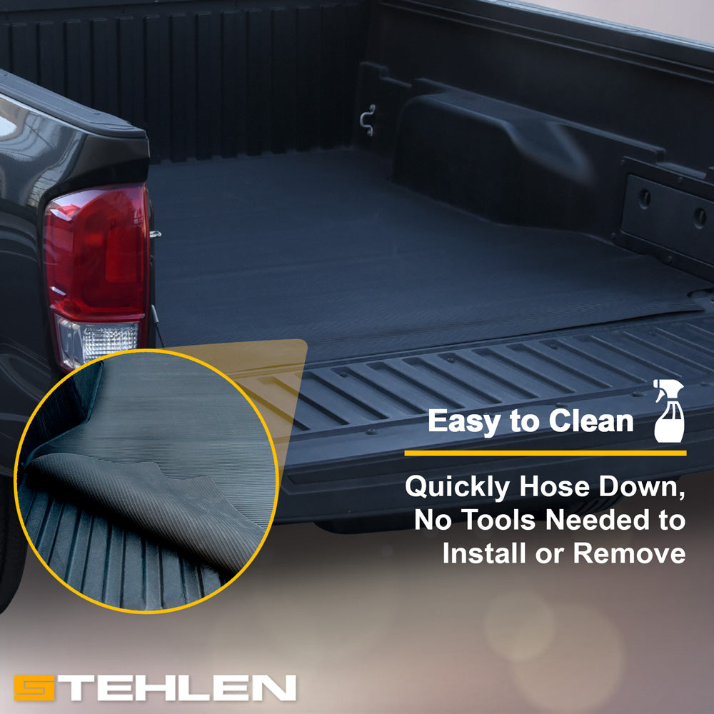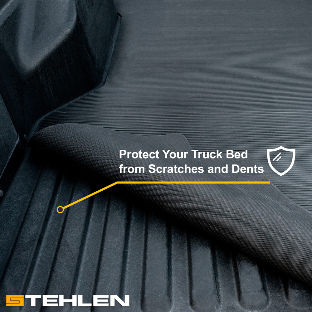 Stehlen truck bed mats are the toughest on the market. Much thicker than your average matte insert. Protect your truck from bumps, dents and daily wear and tear. Extra thick to protect against heavy gear and tools. Truck bed mat rugs enhance the look and style. These rubber carpet mats protect your knees and prevent weight transfer. Not only are these mats super thick and protective, they are also the toughest and most durable mats on the market. At the moment, Stehlen offers the best protection for your bed and luggage. Protects the truck bed from scratches. The diamond-coated construction prevents cargo slippage and side wall damage while enhancing the truck's appearance. These mats can optionally be equipped with matching tailgate mats. If you want maximum protection for your truck bed, Stehlen is the obvious choice.