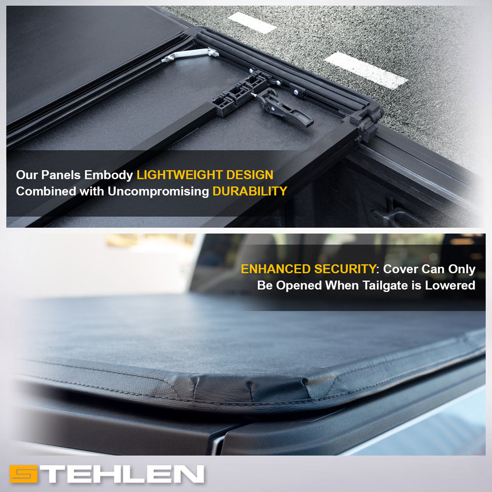 Stehlen 714937189522 Lightweight Hard Tri-Fold Tonneau Cover - Black For Chevy Colorado / GMC Canyon 2015-2022 6 Feet ( 72" ) Long Bed