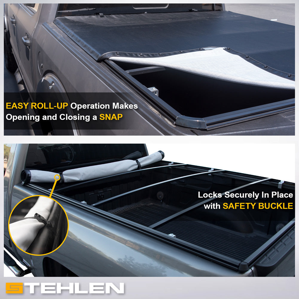 Stehlen Tonneau Cover. Stehlen Has A Great Reputation Of Producing Guarantee Quality, Reliable & Best Looking Products. New Design Provides Quick & Easy Access To Your Bed. Built With Heavy Duty Frame That Ensures Long Lasting Durability & Protection. Easy To Fasten In Any Weather Conditions. Streamline Truck's Bed, Which Will Reduce Drag & Improve Fuel Economy Up To 10%. Our Products Can Also Bring Out Stand Out Improvement On Accessibility & Appearance For Your Vehicle.