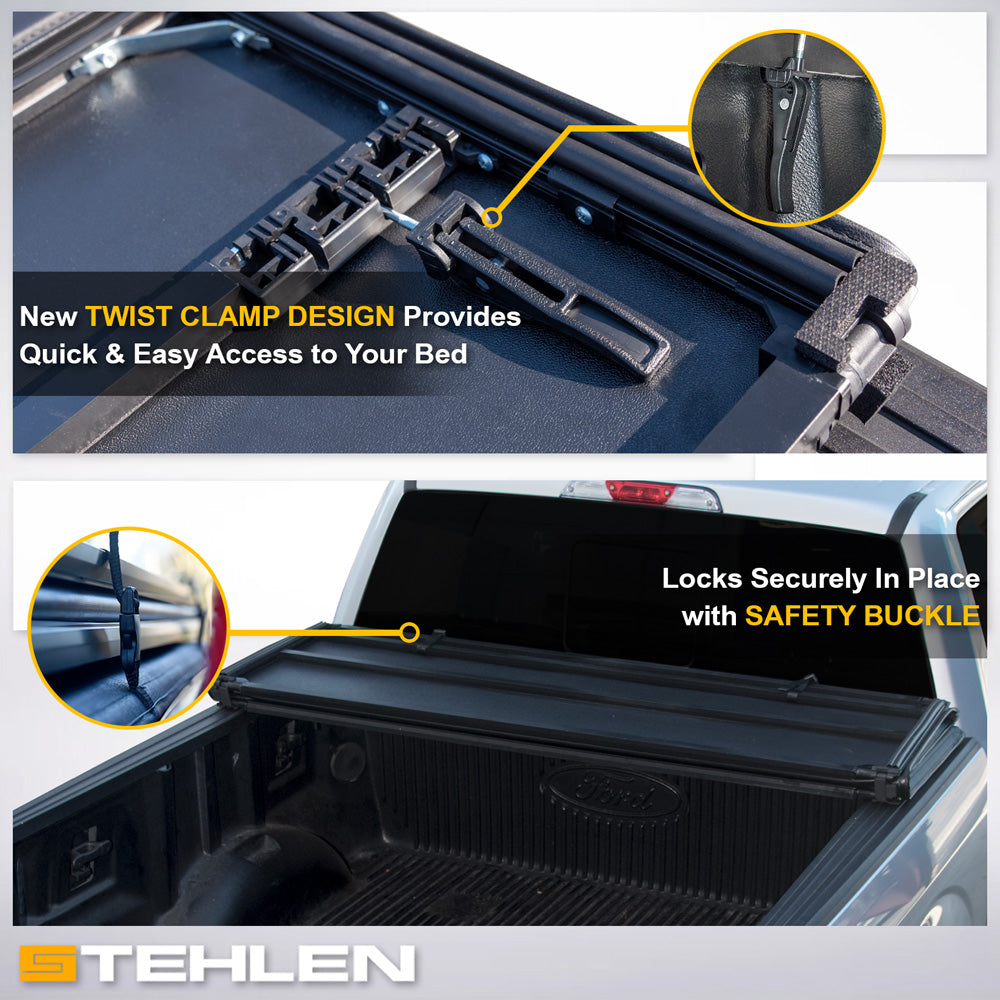 Stehlen Tonneau Cover. Stehlen Has A Great Reputation Of Producing Guarantee Quality, Reliable & Best Looking Products. New Design Provides Quick & Easy Access To Your Bed. Built With Heavy Duty Frame That Ensures Long Lasting Durability & Protection. Easy To Fasten In Any Weather Conditions. Streamline Truck's Bed, Which Will Reduce Drag & Improve Fuel Economy Up To 10%. Our Products Can Also Bring Out Stand Out Improvement On Accessibility & Appearance For Your Vehicle.