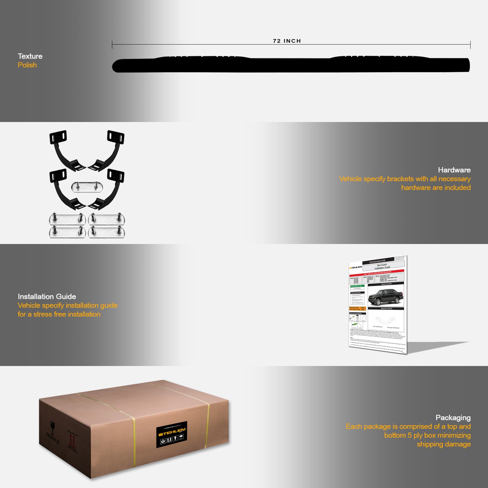Worried about complex installation processes? Fear not· Stehlen step side bars for trucks come with easy-to-follow instructions and all the necessary mounting hardware, allowing for hassle-free installation· Whether you're a seasoned DIY enthusiast or a novice, you'll appreciate the simplicity and convenience of setting up these nerf bars on your Ford F150·